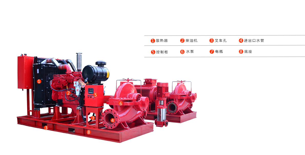 大型EDJ電動柴油雙驅動消防泵各種消防栓、噴淋消防主泵的用泵;適合用于各種消防增壓穩壓用泵場合;各種別墅、小區等消防系統;工業與民用建筑消防系統;適用于各種油庫、油品裝卸碼頭、物流園等消防等級要求高的場所。