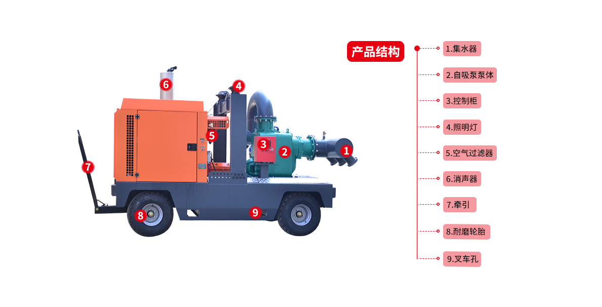 應急搶險救援移動泵車采用一臺柴油發動機同軸拖動一臺水泵的一體化設備同時安裝有兩輪或者四輪的實心輪胎以及澳洲標準的牽引裝備,收到險情求助信息后就能快速響應,將泵車連接至汽車上,快速到達受災現場開始排水作業,還能有效解決搶險救災活動中經常遇到的進入困難、作業面狹窄、多種作業并行等多種難題。